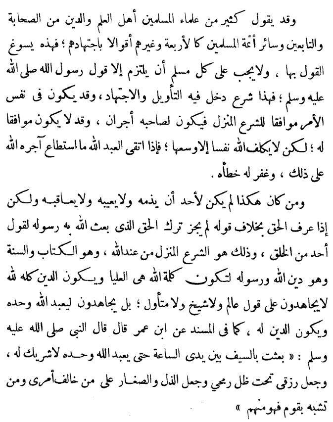 This (truth) is the revealed legislation (al-sharʿ al-munazzal) from Allāh, and that is the Book and the Sunnah, it is the dīn of Allāḥ and His Messenger so that Allāh’s word can be uppermost and so that all devotion (dīn) is for Allāḥ.