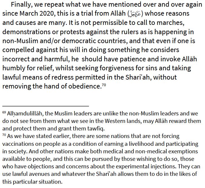 This way, neither the scholars nor the rulers can be attacked for any and all harms, when the realities surface in the future, and we should just see it all as a trial from Allāh, and any difficulties and hardships should be seen as purification for sins.