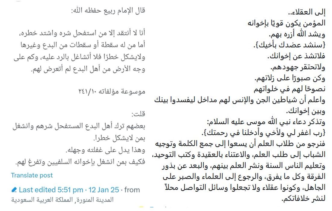 So then the instigator, the social media poster, had to revise his strategy. He came back a second time, with a different approach, just prior to Ramaḍān 1446H (in February 2025), making use of proxies (his students) while remaining in the background, trying to keep his hands clean as much as possible.