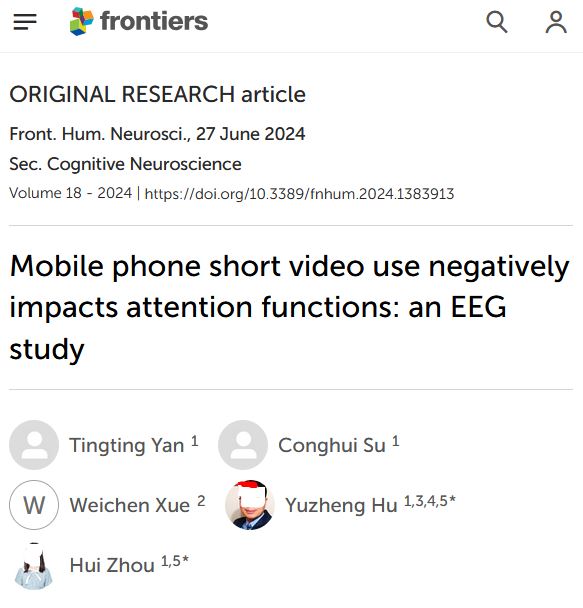 Mobile phone short video use negatively impacts attention functions: an EEG study. Front. Hum. Neurosci., 27 June 2024