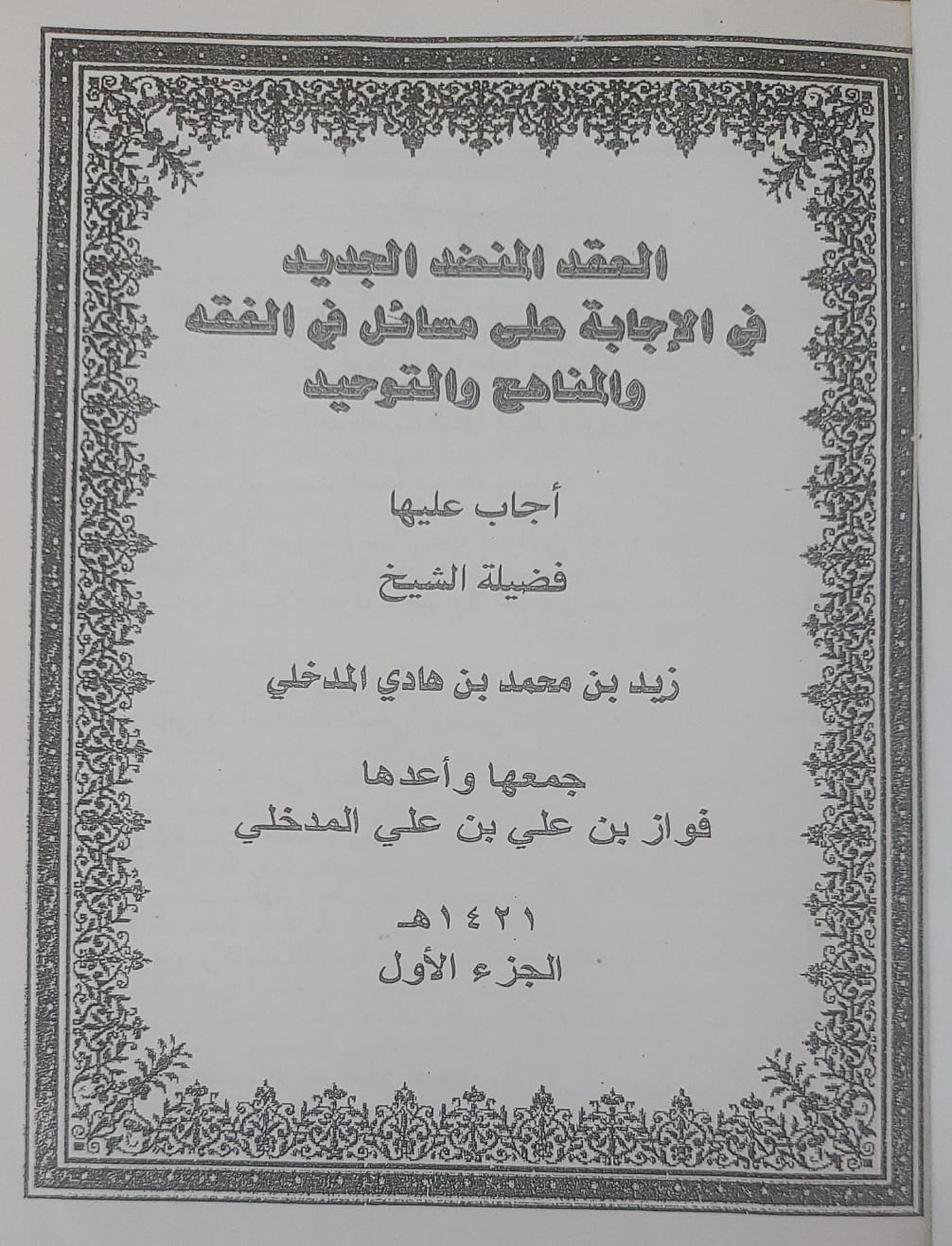 The three volume book “Al-ʿAqd al-Munaddid al-Jadīd Fī al-Ijābah ʿan Masāʾil al-Fiqh wal-Manhaj wal-Tawḥīd” (1421) was compiled by one of the Shaykh's students, Shaykh Fawwāz al-Madkhalī and contains valuable answers to questions on methodology.