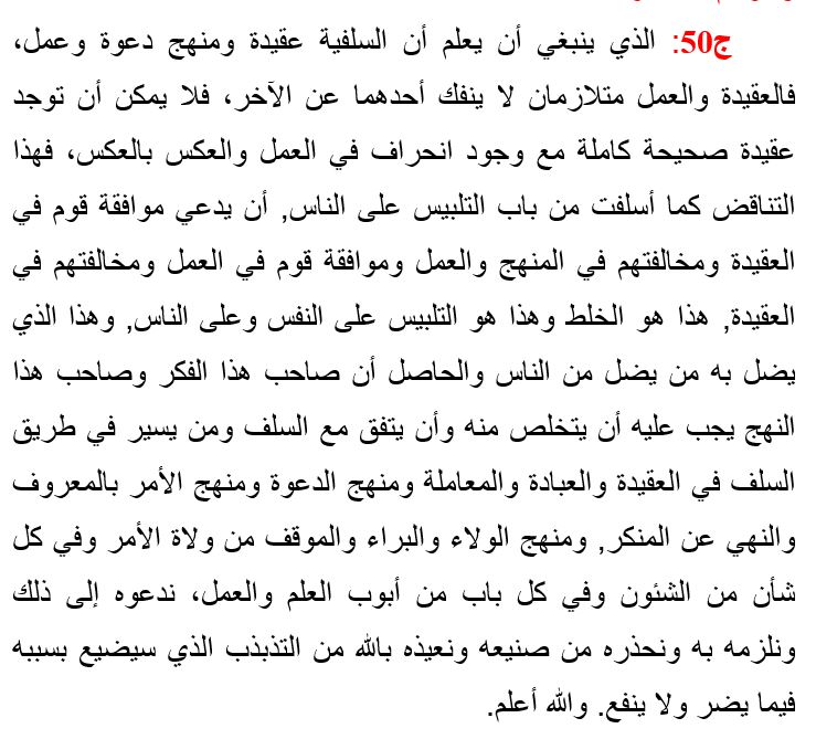 In conclusion, the person upon this ideology and this methodology must abandon it and align himself with the Salaf and with those who proceed upon the path of the Salaf in creed, worship, dealings, and in the methodology of daʿwah, the methodology of enjoining good and prohibiting evil, the methodology of loyalty and disloyalty and the position towards those in authority, and in every affair and every subject from the subject matters of knowledge and action.